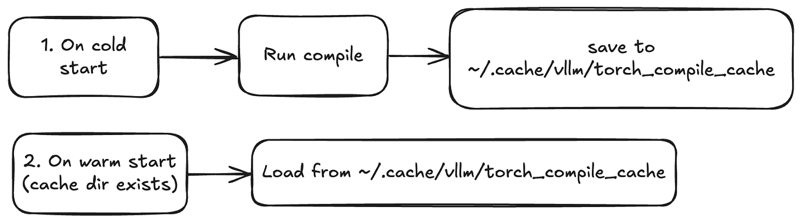 vLLM compiles models during cold start and saves the artifacts (FX graphs, Triton kernels) in a cache directory (by default, ~/.cache/vllm/torch_compile_cache). On warm start, the artifacts are retrieved from the cache. You can disable the cache via VLLM_DISABLE_COMPILE_CACHE=1 or by deleting the cache directory.
